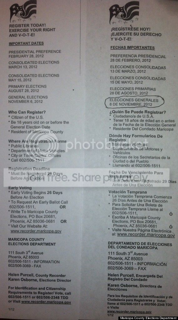 TWICE in the last week, Maricopa County in AZ has put out Spanish language "fliers" that contain the WRONG date for the general election! ONCE, maybe a mistake, but TWICE, bullshit! 30% of the populace of that county are Latino!